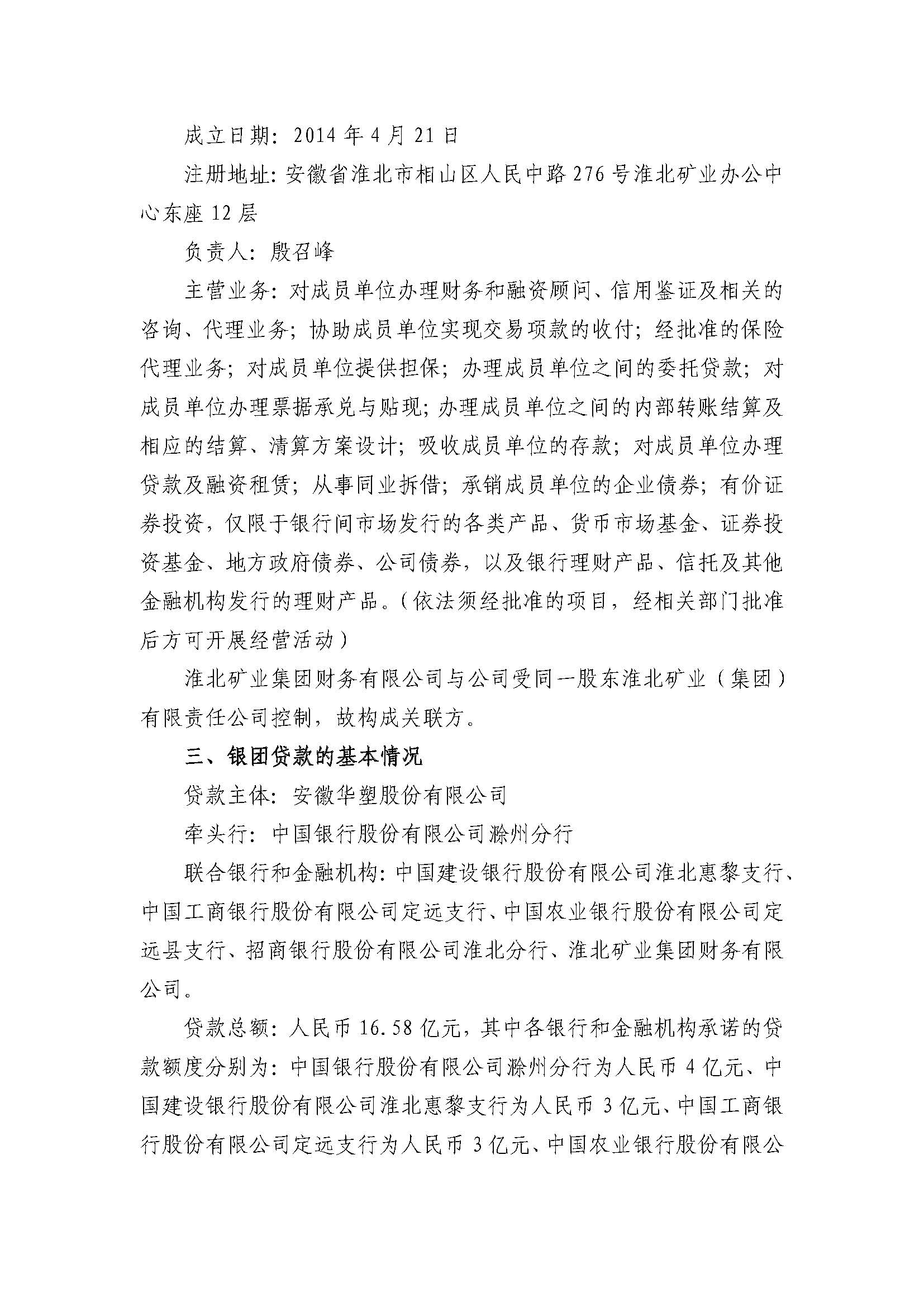 安徽华塑股份有限公司关于申请银团贷款暨关联交易的公告