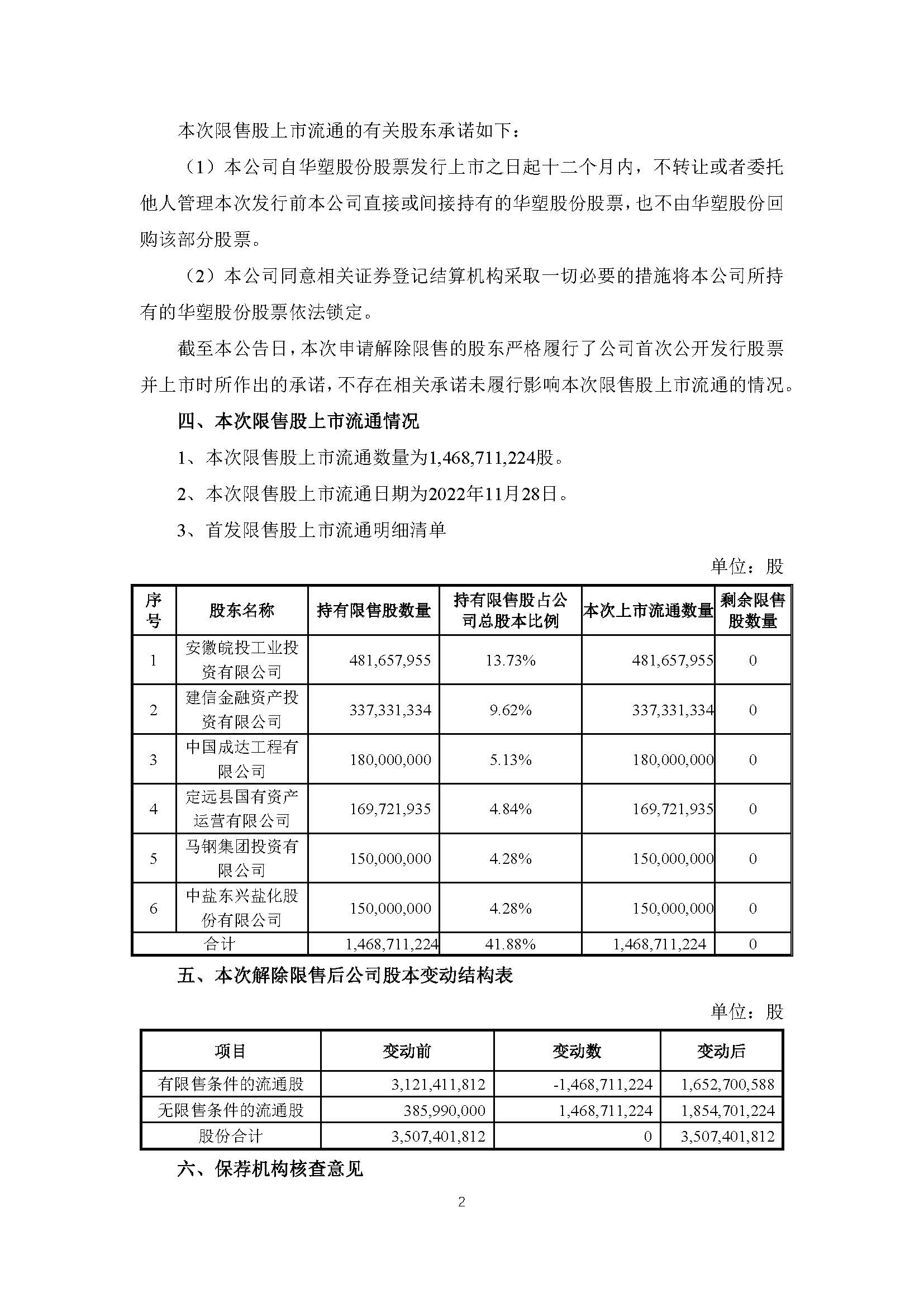安徽华塑股份有限公司首次公开发行部分限售股上市流通公告