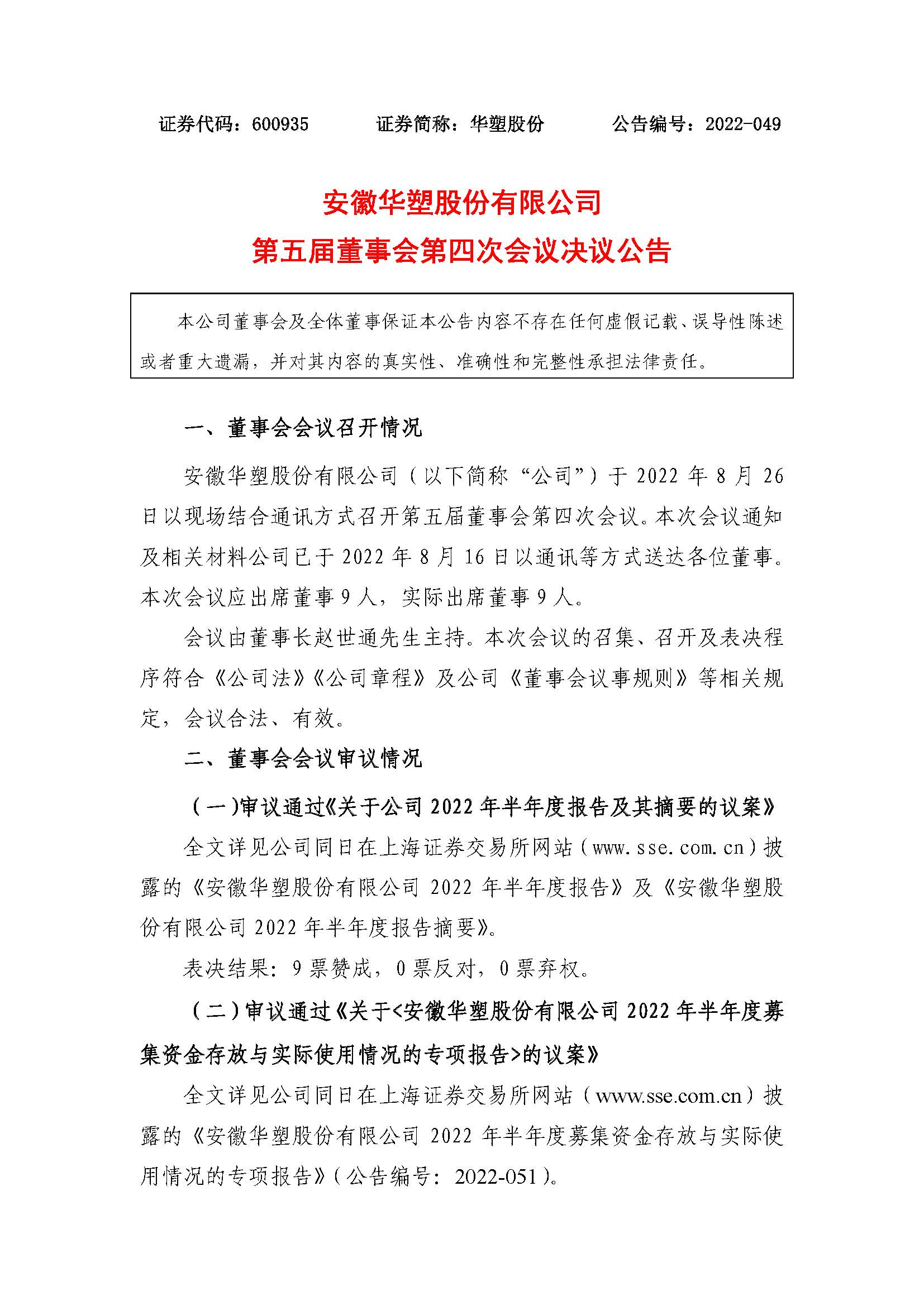 安徽华塑股份有限公司第五届董事会第四次会议决议公告