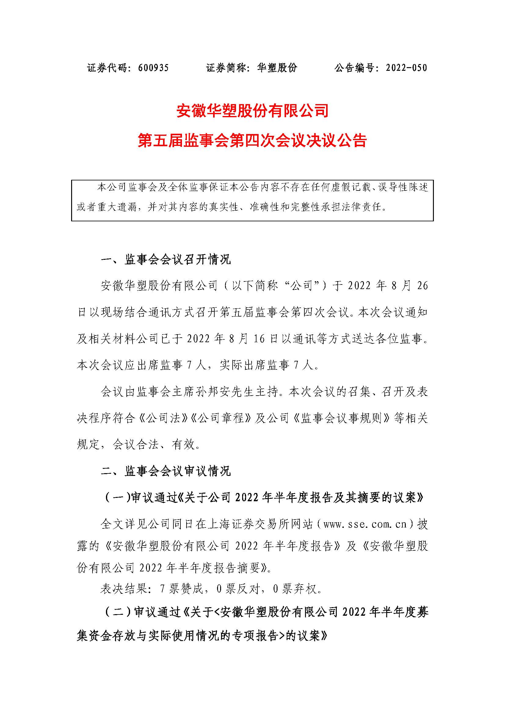 安徽华塑股份有限公司第五届监事会第四次会议决议公告
