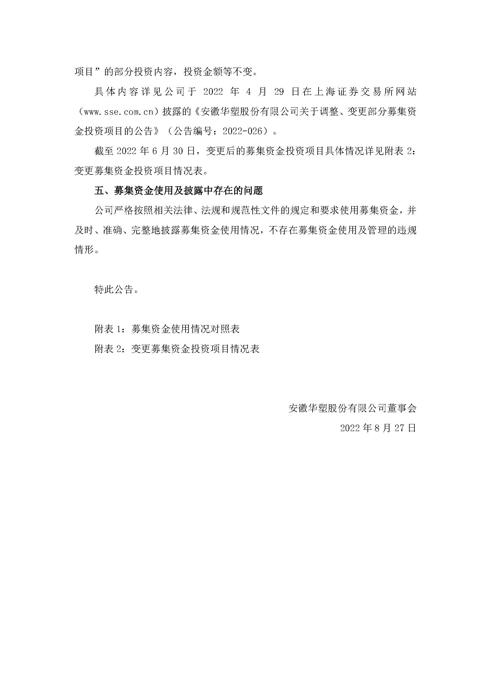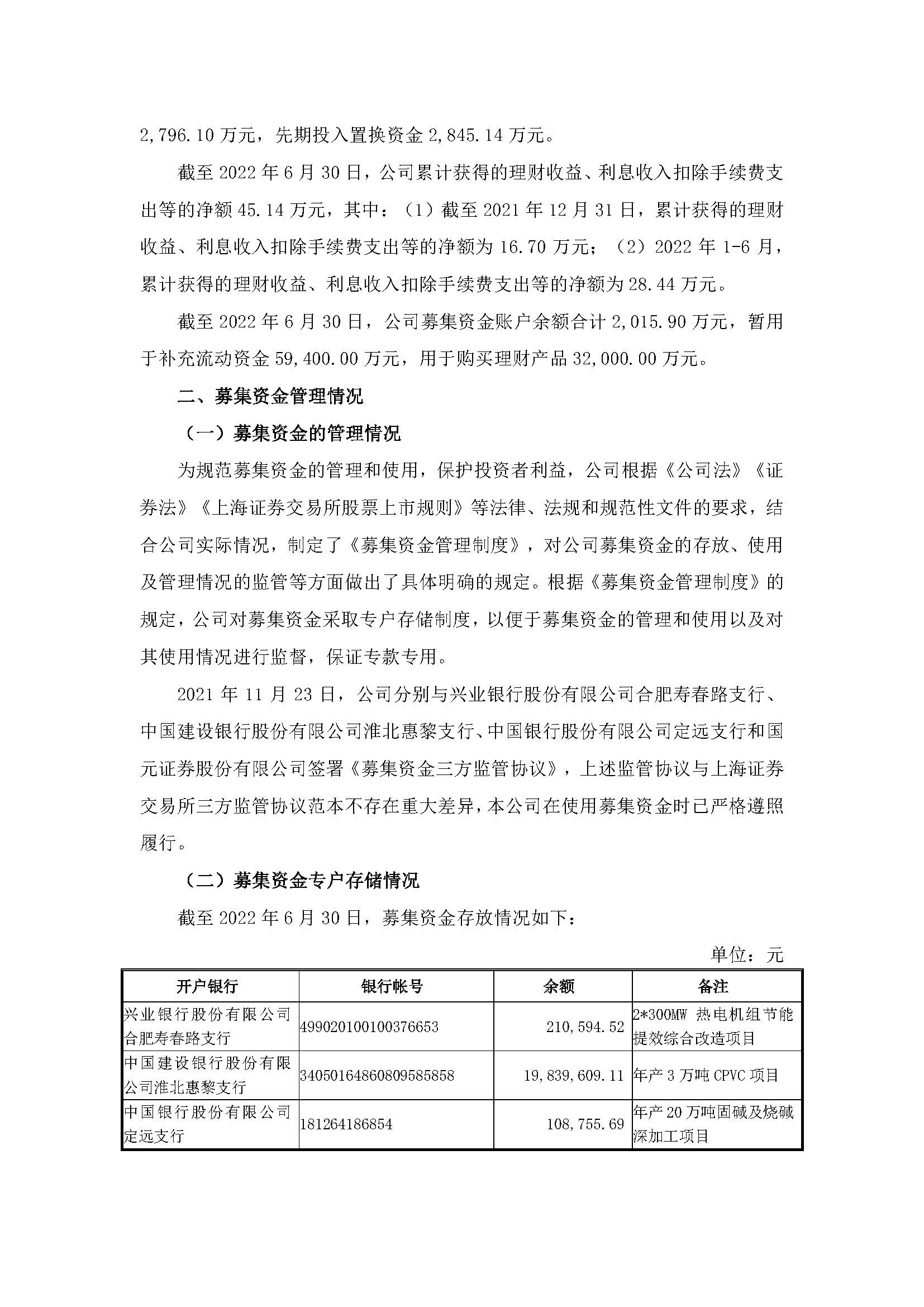 安徽华塑股份有限公司2022年半年度募集资金存放与实际使用情况的专项报告