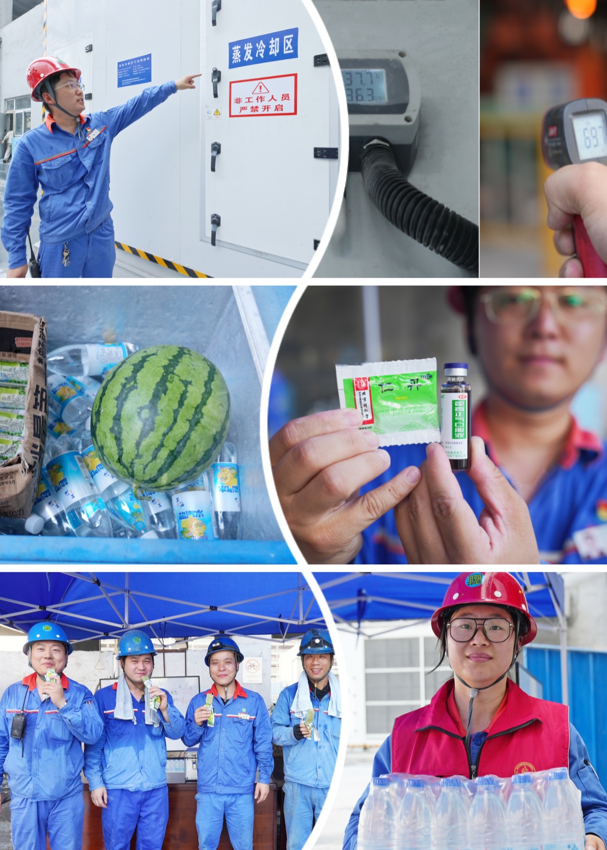 为确保平稳度夏,电石分公司发出“战高温、保安全、促生产”动员令,每天出动车辆对生产道路洒水降尘。生产区域启动“智能高压旋转喷雾”装置,定时喷雾降温作业。党支部书记带领青年志愿者下车间、进班组、到岗位、送清凉,带去党组织的殷切关怀。各生产车间搭设了“清凉棚”,配备了冰柜、饮水机、绿豆汤、矿泉水、西瓜、雪糕及仁丹、藿香正气水等解暑降温物品,全面打响迎峰度夏保卫战。