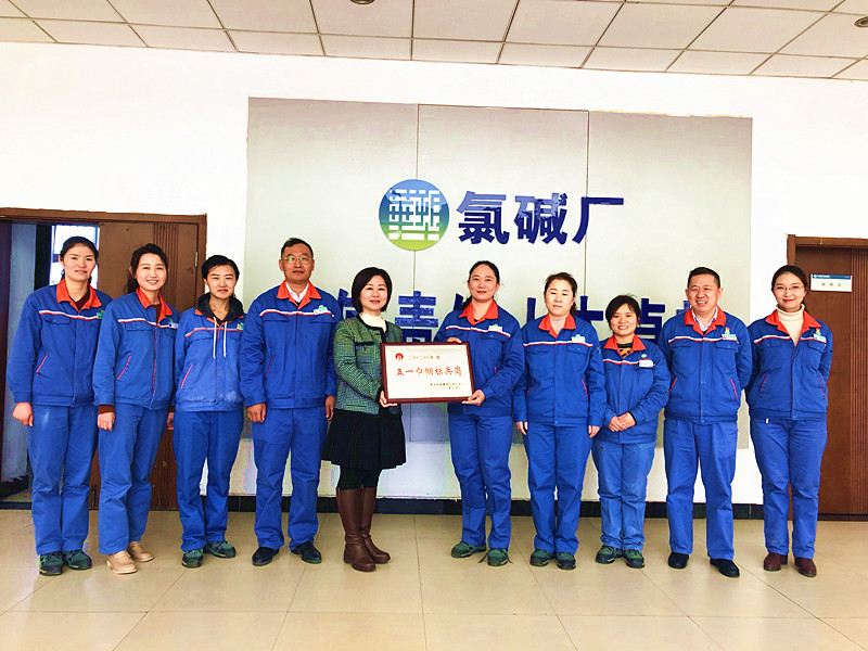 调研组到氯碱厂,为生产技术科分析室授牌“2020年度五一巾帼标兵岗”,点赞华塑女青年巾帼不让须眉的时代风采和良好精神面貌。