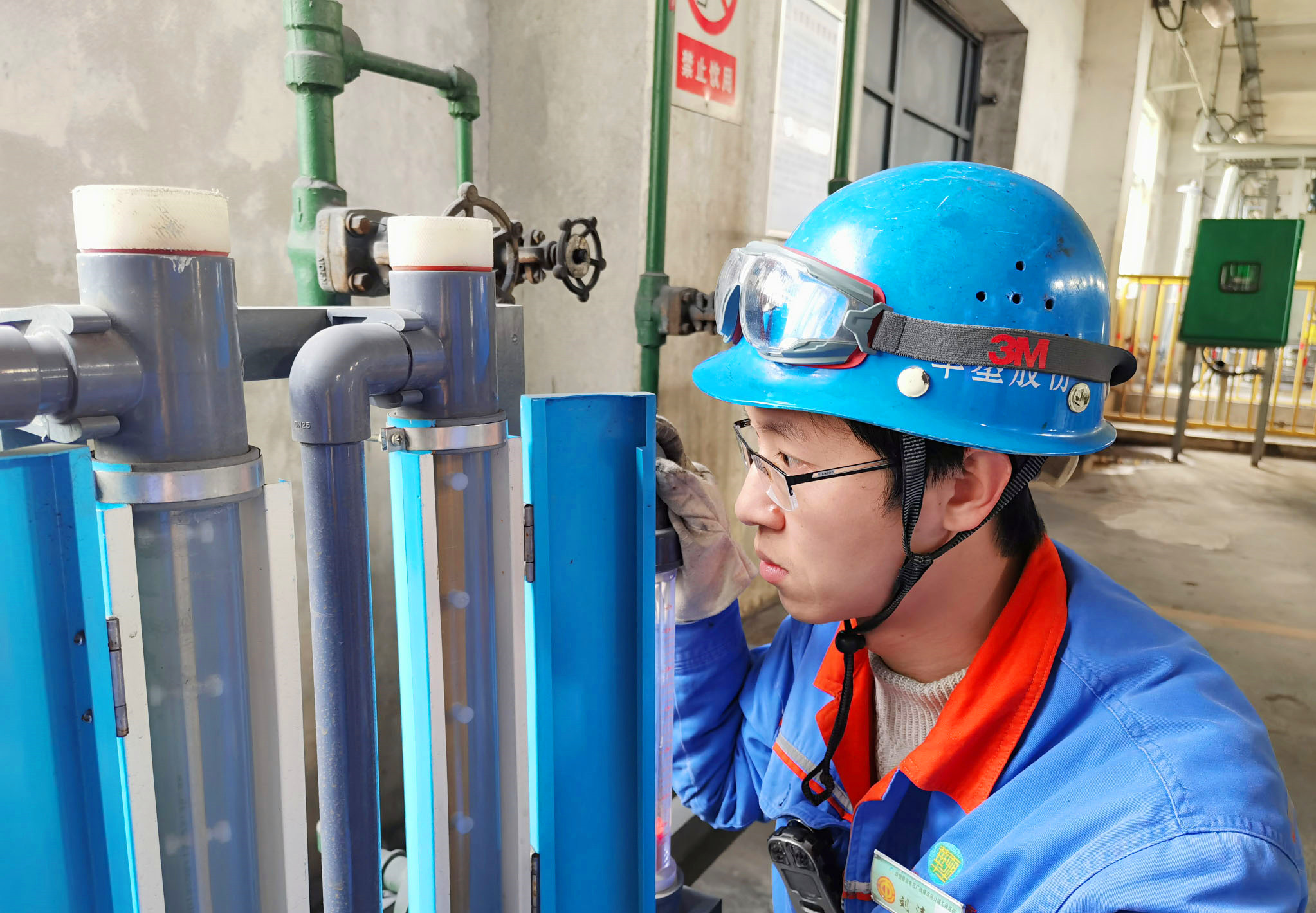电石厂检修车间刘涛在检查一期泵房旁路挂片测试器