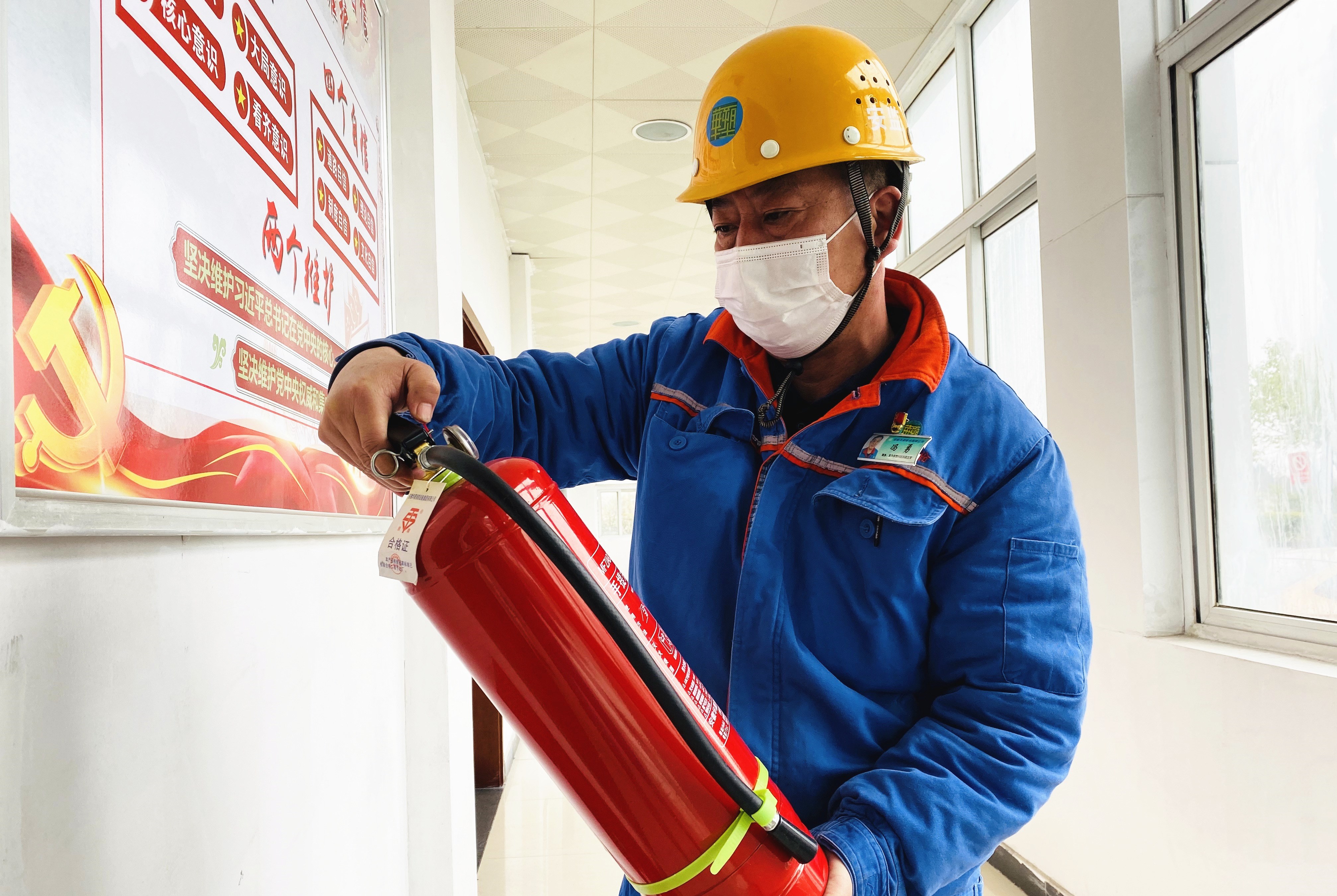 无为华塑消防负责人冯勇在检查灭火器使用情况
