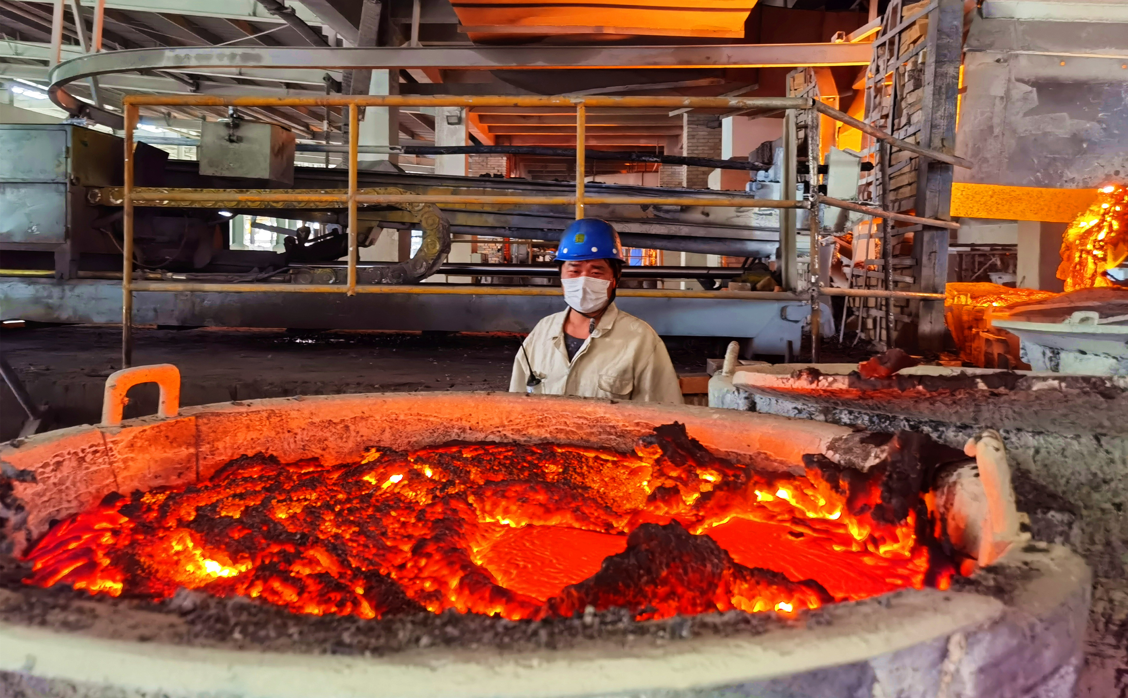 收心聚力加油干,牛气满满开新局,春节长假结束后,中国多地迎来节后复工复产的高潮。2月19日上午,笔者在安徽华塑股份公司电石厂三车间10#炉前看到,出炉机器人稳步运行,电石锅车缓缓移动,一锅锅象征着红红火火、兴旺发达的电石沸腾涌动,一片热火朝天的繁忙景象。