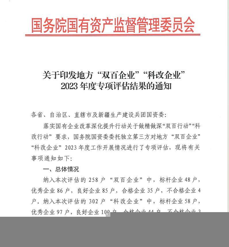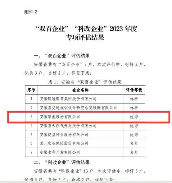 近日,国务院国资委办公厅印发《地方“双百企业”“科改企业”2023年度专项评估结果》,华塑股份获评优秀等级。这是该公司继2023年获评“双百企业”与“标杆企业”取得的又一成果。