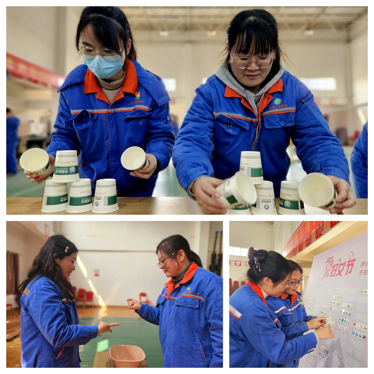 本次活动共包含看图猜成语、纸杯接力、石头剪刀布等趣味游戏。女职工们积极参与,大家相互鼓劲、互相配合,整个活动现场笑趣横生,欢声笑语不断,氛围轻松而热烈。精彩纷呈的活动,丰富了职工节日文化生活,营造了欢乐祥和、喜庆热烈、文明进步的浓厚节日氛围。