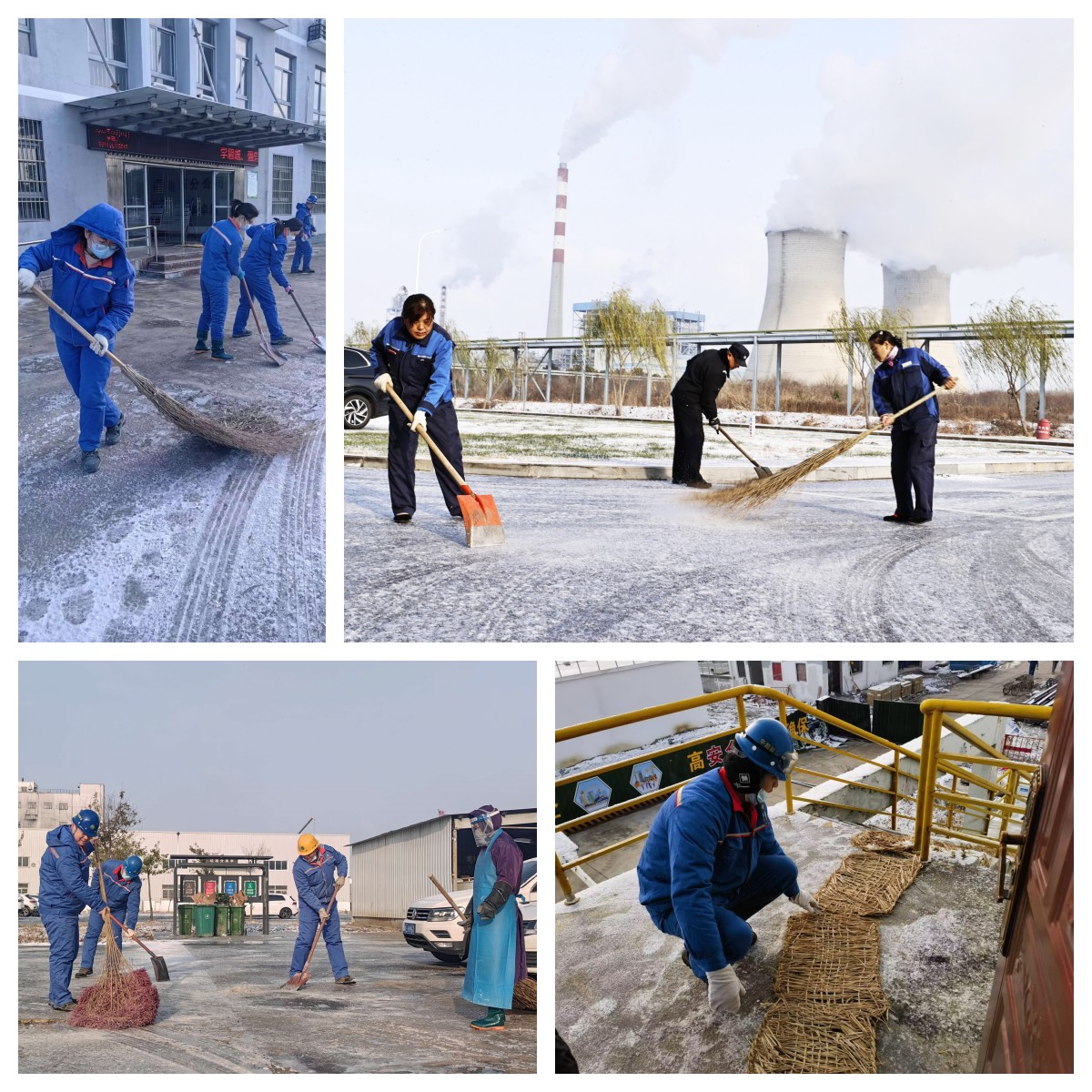 12月16日,雪后初霁。华塑股份各单位组织人员扫雪除冰,确保交通安全。