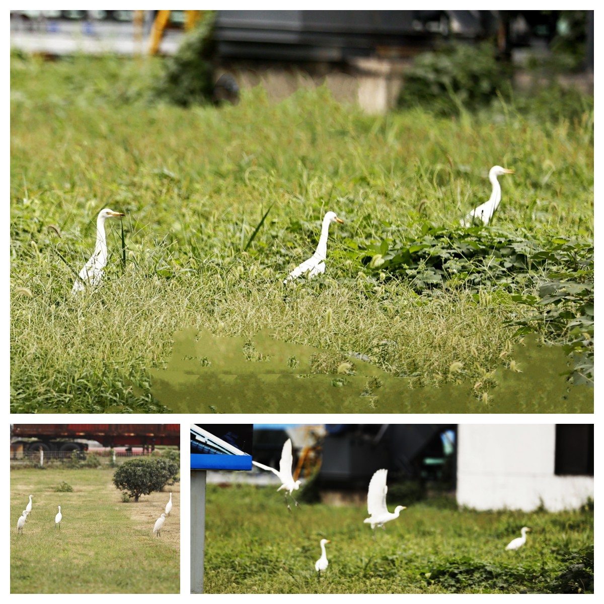 9月11日,在华塑股份热电分公司、水泥分公司厂区绿地上,一群群白鹭或盘旋舞动、或嬉戏觅食,构成了一幅人与自然和谐共生的美丽画卷。