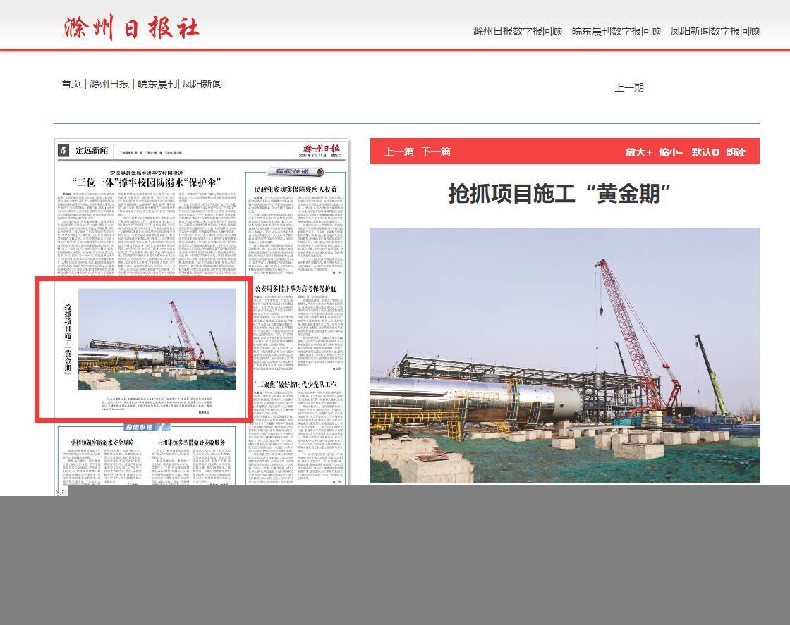 《滁州日报》6月11日五版:华塑股份抢抓项目施工“黄金期”