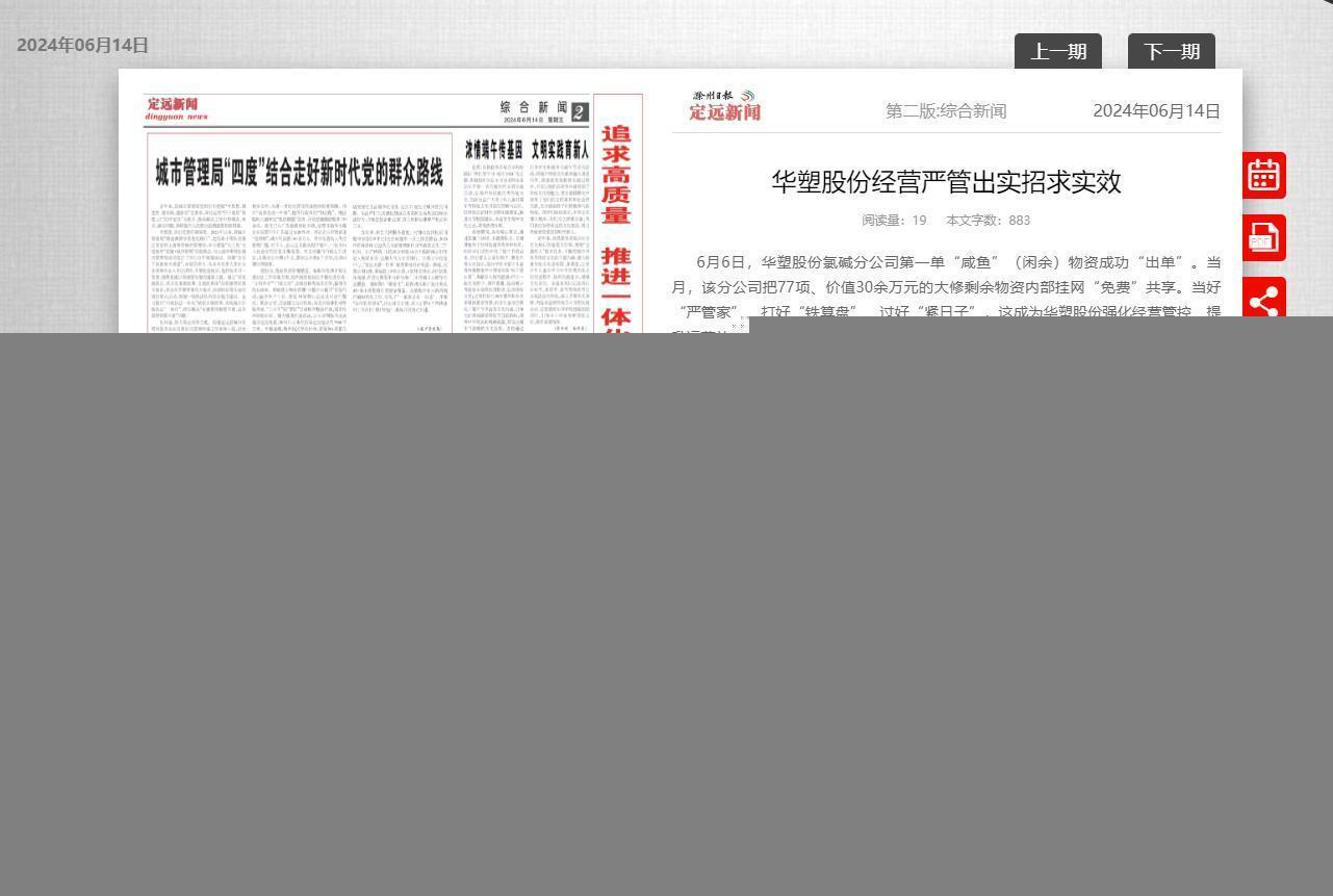 《滁州日报-定远新闻》6月14日二版:华塑股份经营严管出实招求实效