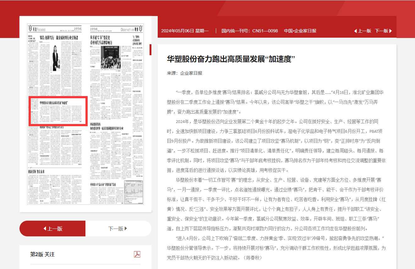 《企业家日报》5月6日二版:华塑股份奋力跑出高质量发展“加速度”
