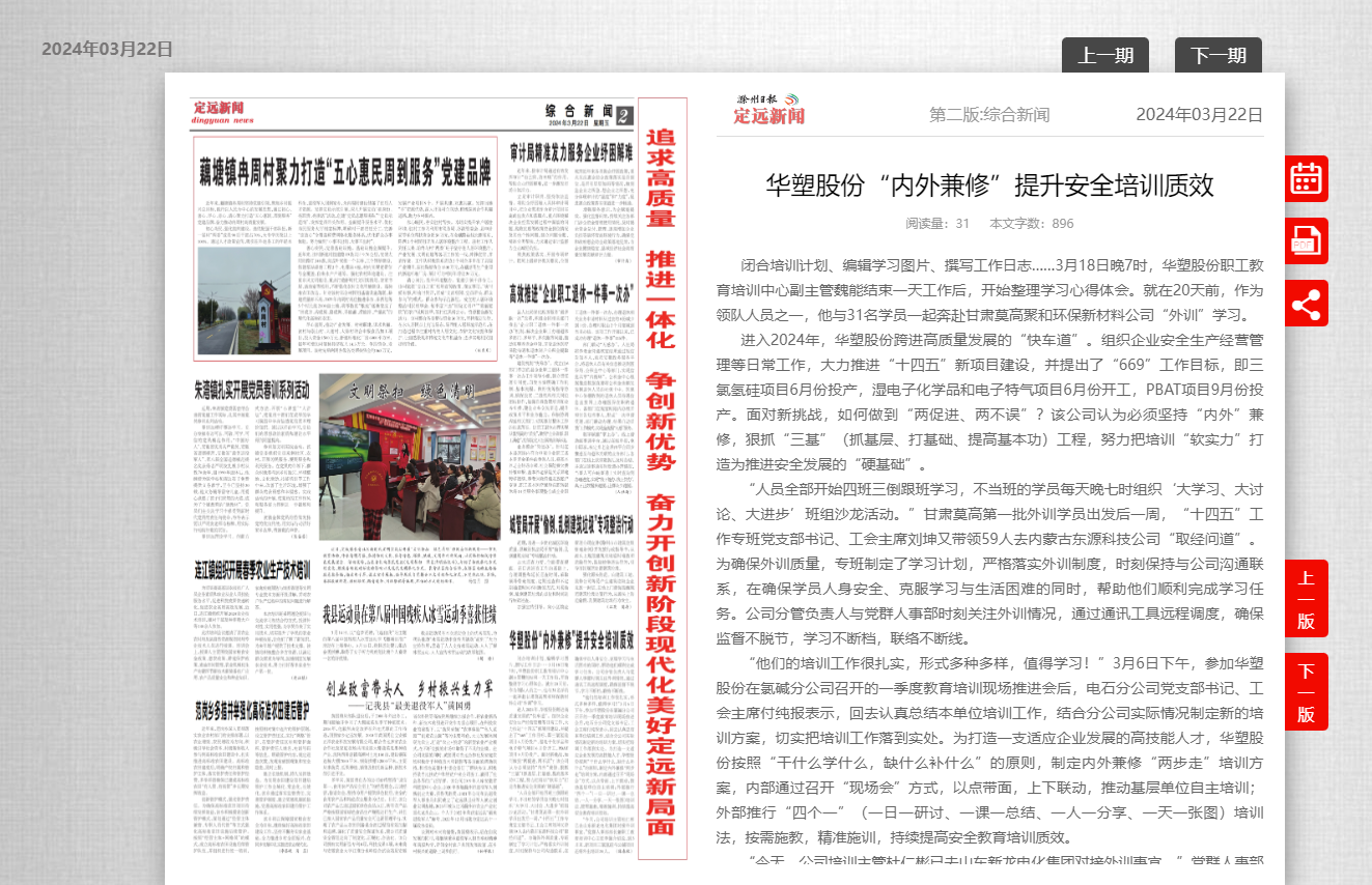 《企业家日报》3月22日八版华塑股份“内外兼修” 提升安全培训质效