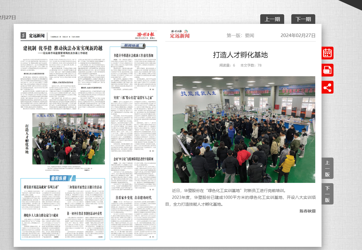 《企业家日报》3月1日八版头条:华塑股份 “党管培训” 助力企业高质量发展