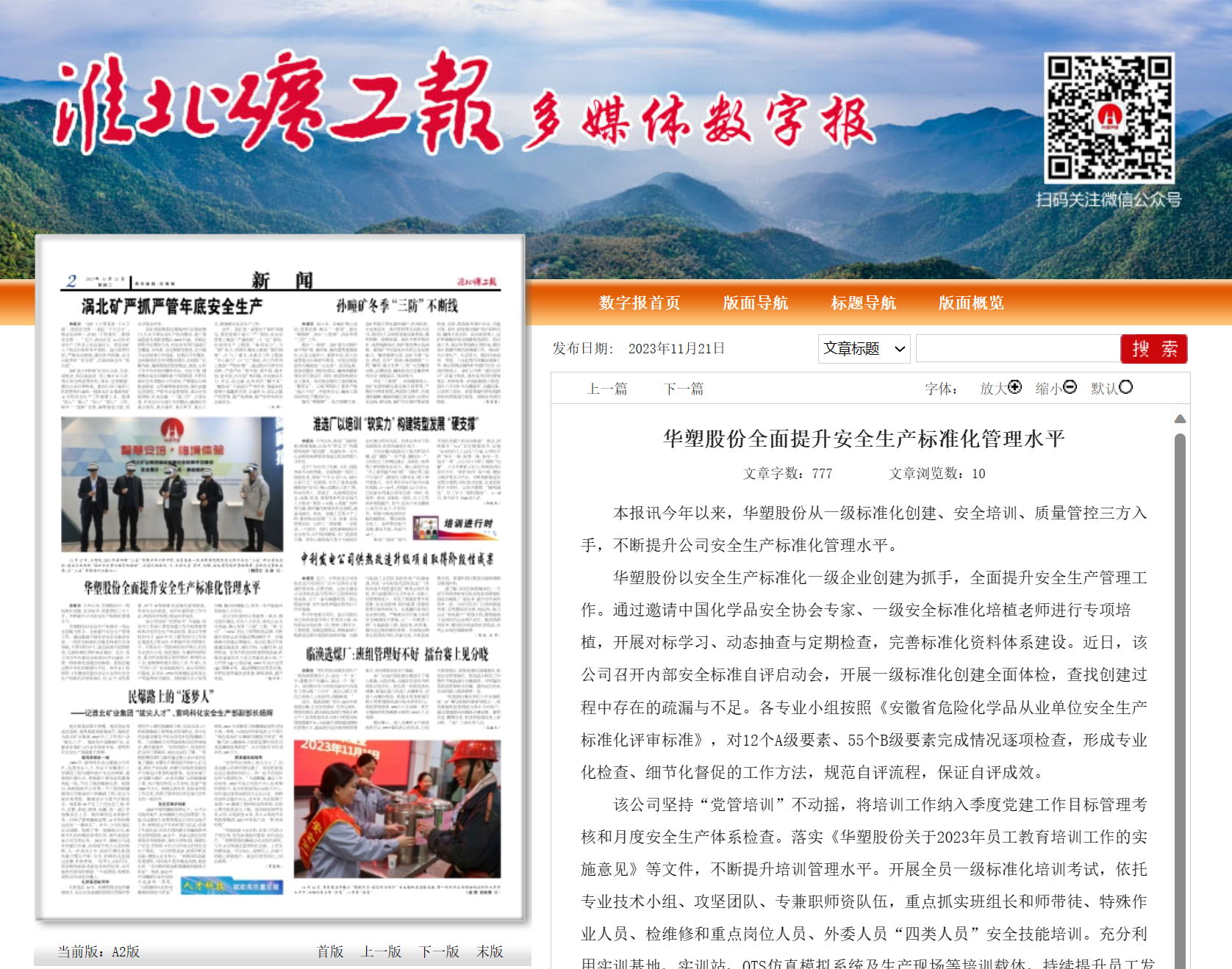 《淮北矿工报》11月21日二版:华塑股份全面提升安全生产标准化管理水平