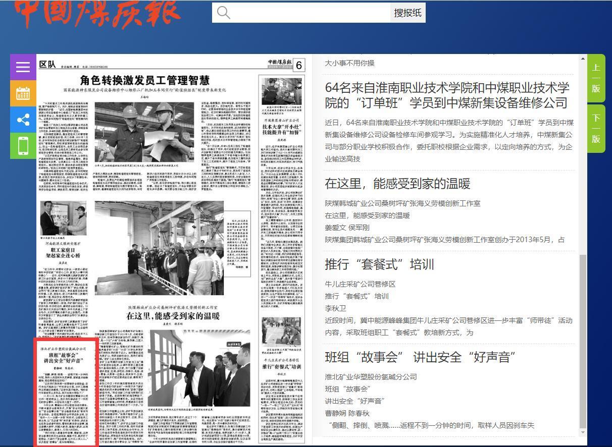 《中国煤炭报》11月23日六版:班组“故事会”讲出安全“好声音”