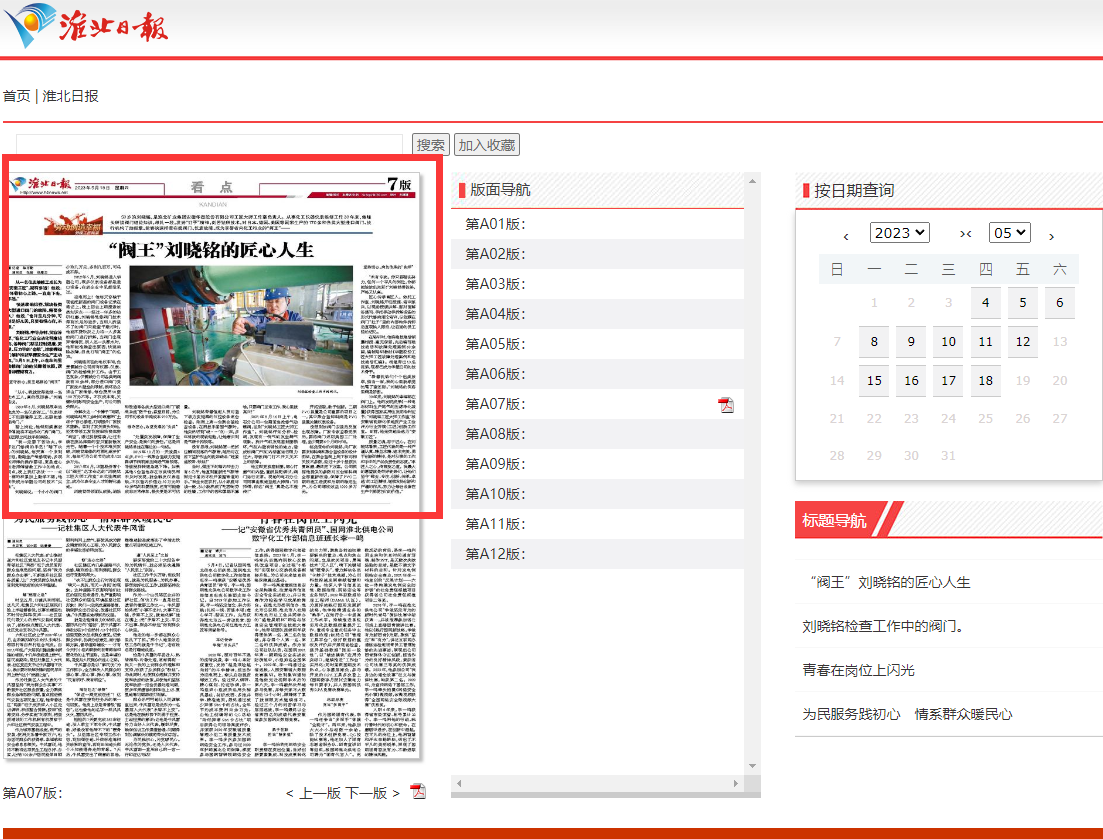 《淮北日报》5月18日七版:“阀王”刘晓铭的匠心人生