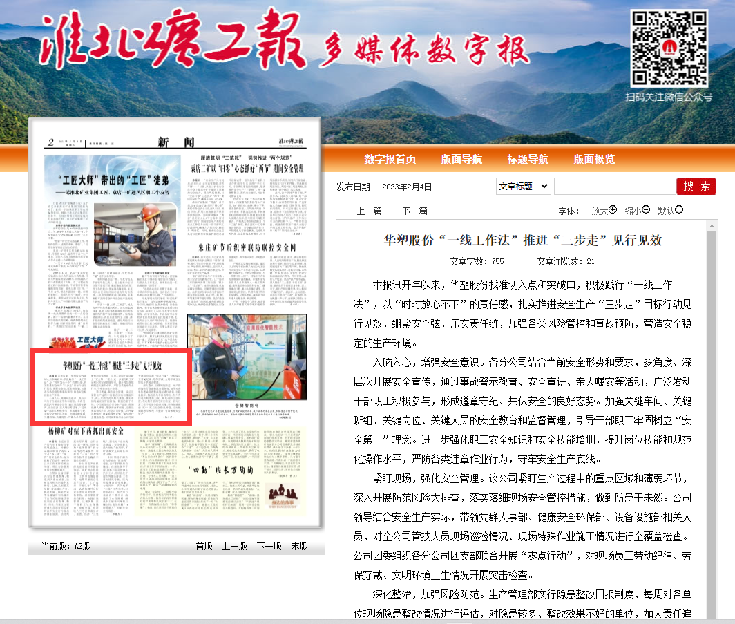 《淮北矿工报》2月4日二版:华塑股份“一线工作法”推进“三步走”见行见效