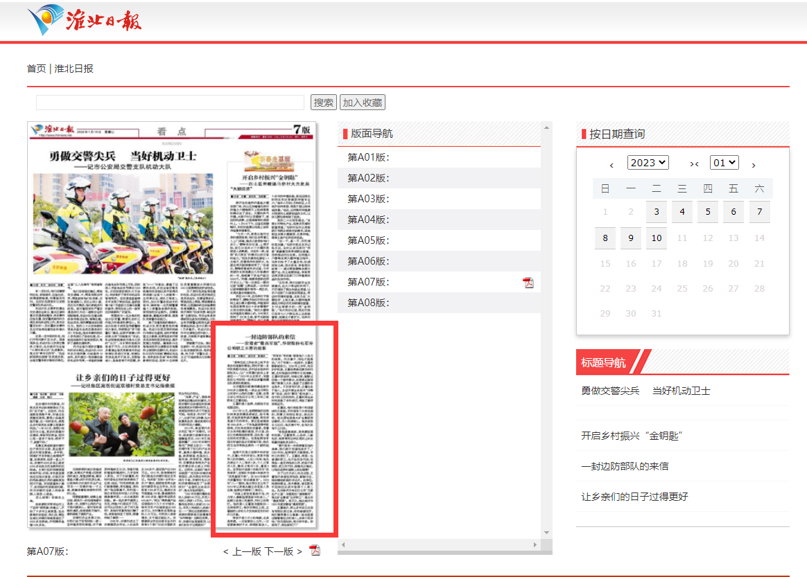 《淮北日报》1月10日七版:一封边防部队的来信