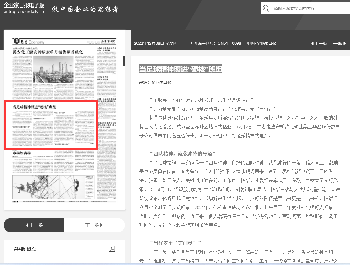 《企业家日报》12月8日四版:当足球精神照进“硬核”班组