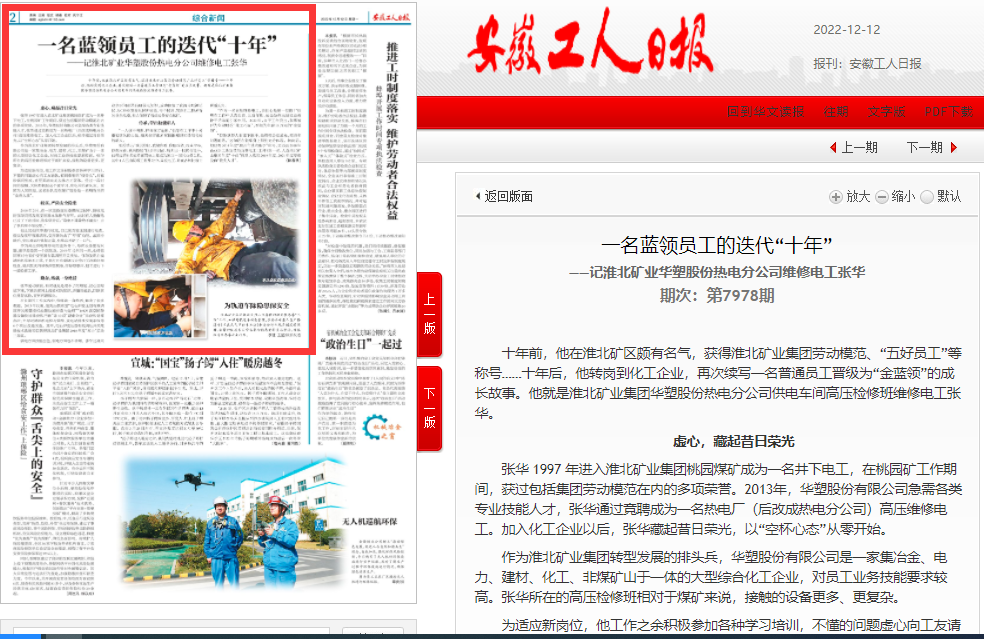 《安徽工人日报》12月12日二版头条:一名蓝领员工的迭代“十年”