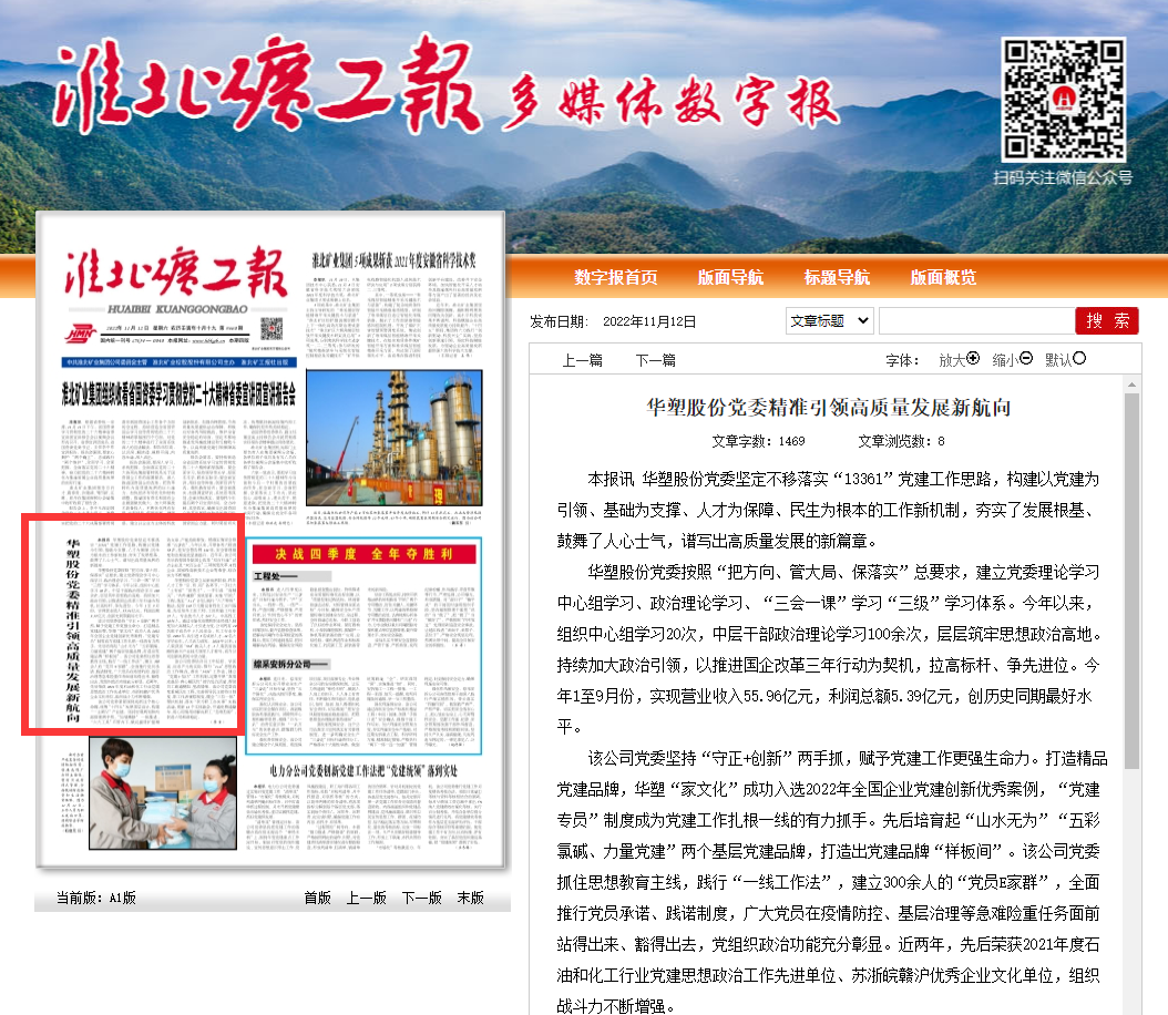 《淮北矿工报》11月12日一版:华塑股份党委精准引领高质量发展新航向
