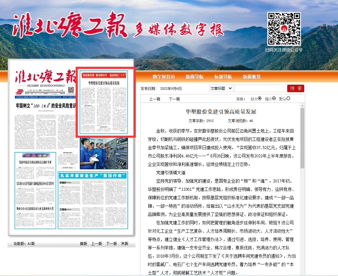 《淮北矿工报》9月6日一版:华塑股份党建引领高质量发展